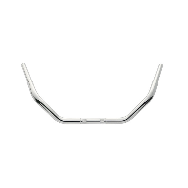 Chrome. Approx. dimensions: 5.5″ end rise; 32.5″ wide; 12″ center; 16″ pullback. Specifically designed for Road King and riders of average and shorter stature. A great fit on FLSTC, FLSTF models or stretched frame custom bikes. The large 16″ pullback will put you right in the comfort zone. Works with or without e-throttle. Note: Fits models with 1″ diameter riser clamp area only.