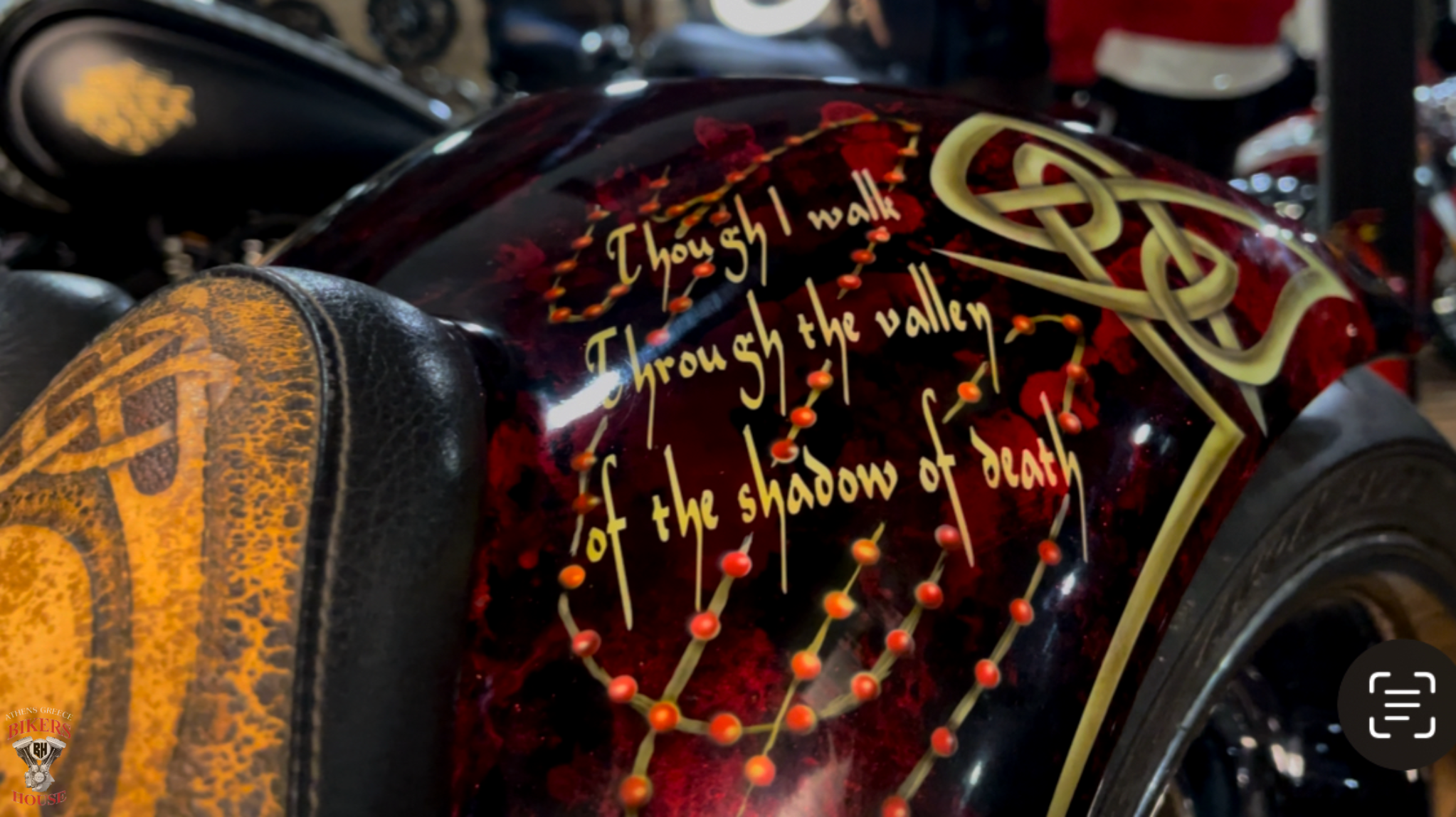 Handcrafted in 2010, wrapped in deep red paint, covered in Norse and Celtic markings, and seated with hand-engraved leather — every inch of it tells a story.